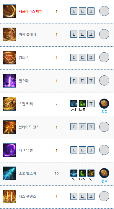- 단, 각성기, 이동기, 기상기는 블레이드 오브에 의한 재사용 대기 시간 감소 효과가 적용되지 않습니다.