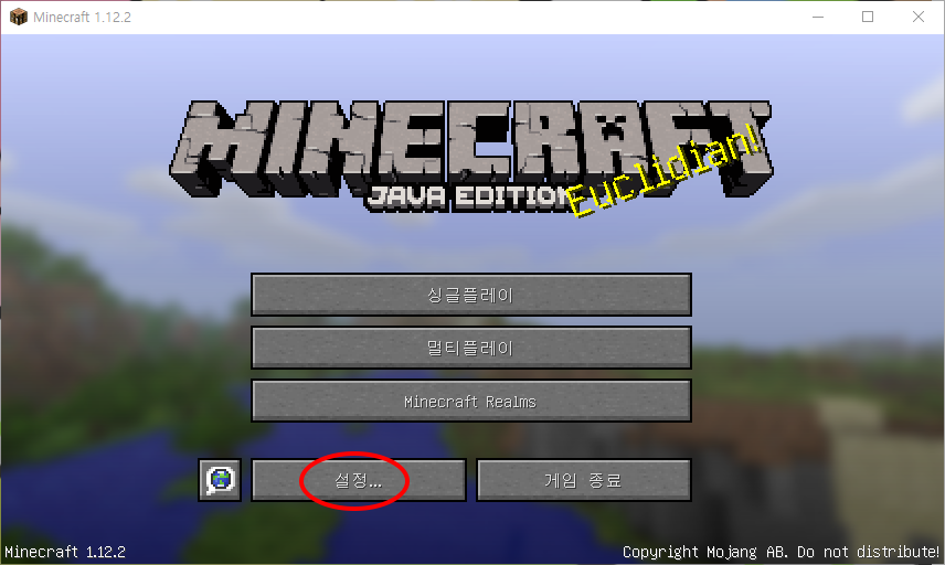 마인크래프트를 켜준후 설정을 눌러줍니다.