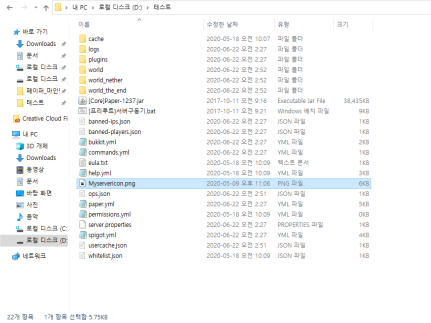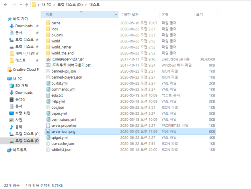 준비해 준 버킷 파일 안에 자신이 준비한 png 파일을 넣어준 후 파일의 이름을 server-icon으로 변경해 줍니다