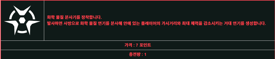 나가면 다시 차오르며, 내부의 모든 플레이어의 가시거리를 감소시킨다.