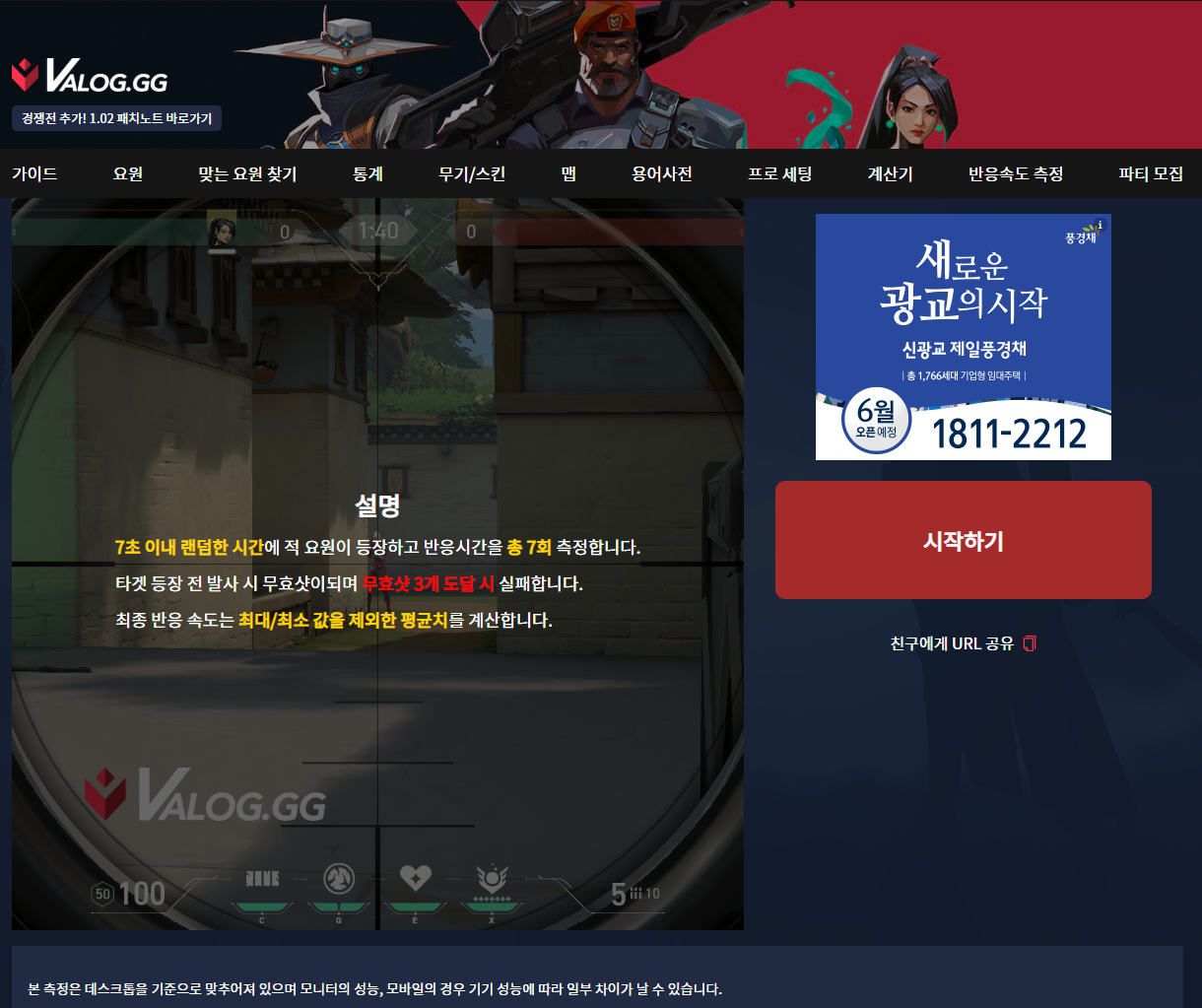 저는 이 사이트에서 제일 마음에 들었던것은 반응 속도 측정 서비스입니다. 랜덤한 시간(최대 7초)에 적 요원이 등장하고 발사하면 반응 속도를 측정하며 총 7회 측정합니다, 또한 무효샷의 경우 무효샷 3개 이상 도달시 실패합니다. 그리고, 반응 속도 측정을 해보았는데 제 반응 속도에 놀랐습니다. ㅋㅋ