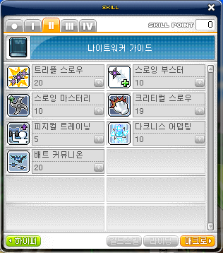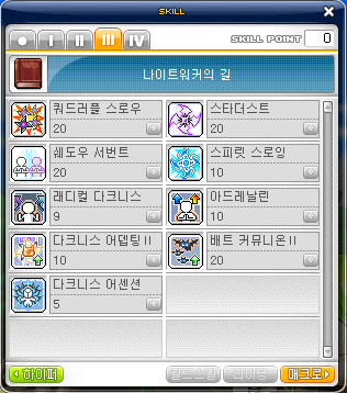 안녕하세요 아글입니다.오늘은 나이트워커의 1 ~ 4차 스킬트리 그리고 하이퍼 스킬, 스킬 설명을 해드리려합니다.