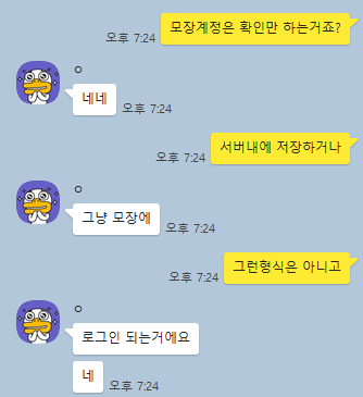해당 작업을 하며 로그인을 해야 하는데 로그인에서 사용된 기록, 아이디, 비밀번호는 Api 확인용으로만 사용된다고 말씀하셨습니다.