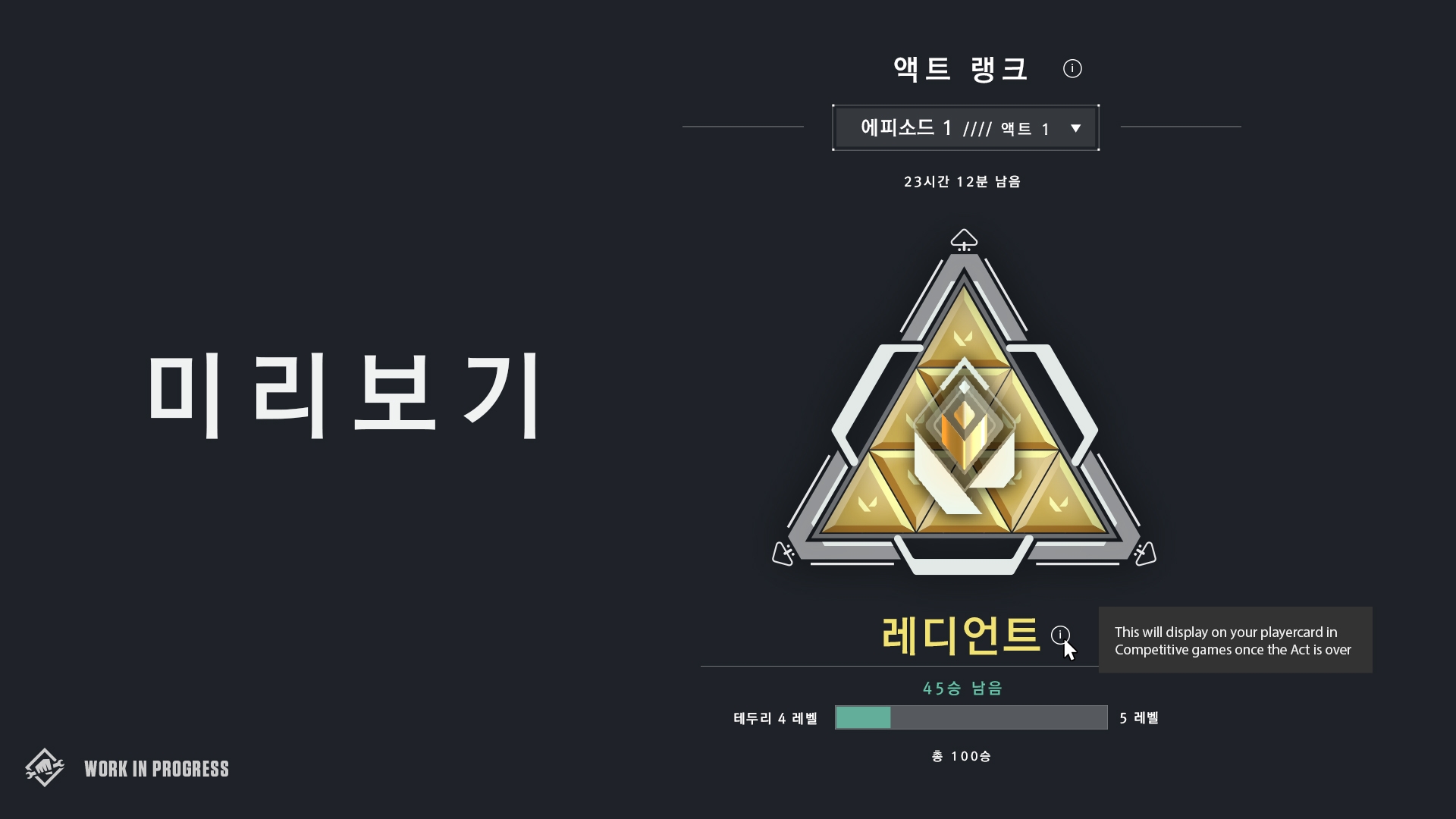 액트가 마무리되는 시점의 액트 랭크는 경쟁전에서 플레이어 카드에 표시되는 휘장으로 남게 됩니다.